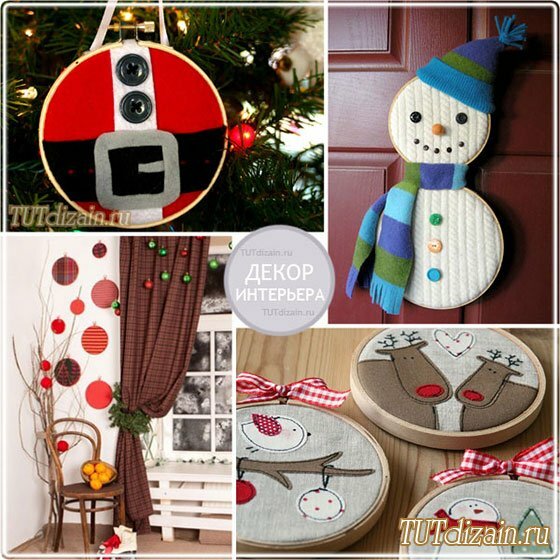 При помощи различные материалов, можно реализовывать разные стилевые решения для вашего дома и праздника. Нотку шебби-шика и легкости смогут привнести шифоновые тонкие ткани, плетения, кружево. Для эффекта более теплого уюта можно использовать фетр, плотную шерстяную ткань, в некоторых случаях можно даже не обрезать излишки ткани вокруг пяльцев, так будет смотреться даже интересней.
