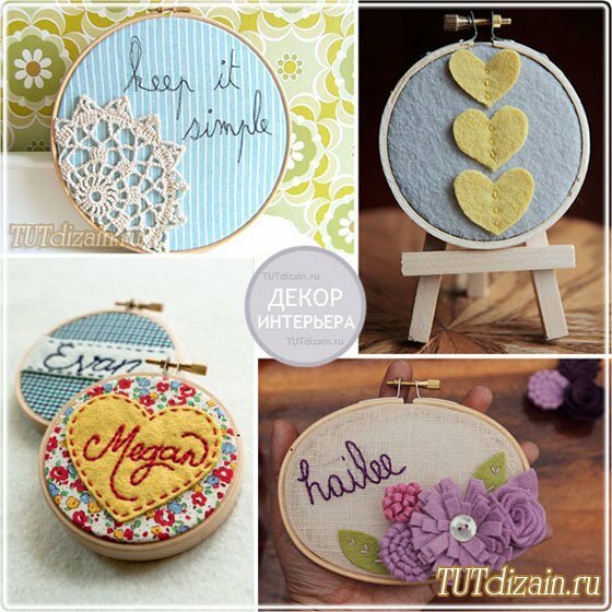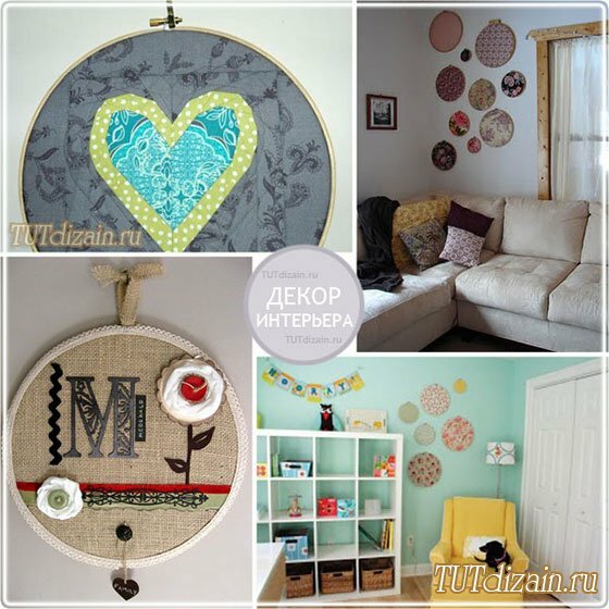 У нас на tutdizain.ru собралась огромная коллекция вариантов использования пяльцев в декоре интерьера. Такая не дорогая и не сложная идея заслуживает должного внимания, так как способна привнести определенную изюминку в оформление дома.