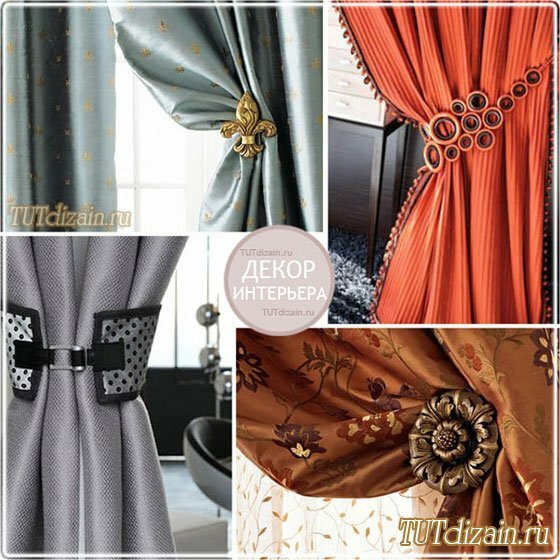 Довольно стильно смотрятся подхваты для штор из бус и бисера. Ниже смотрите несколько вариантов.