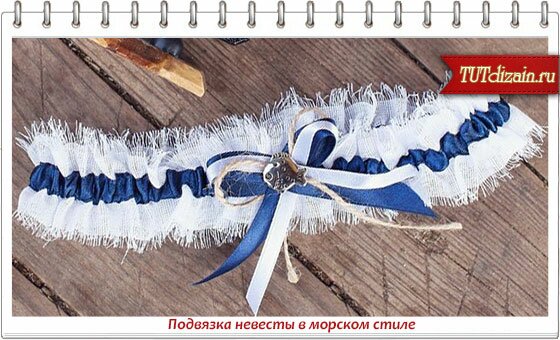 Сегодня большую популярность приобрела организация свадьбы в морском стиле. В особенности данного стиля заключается использование простых, вероятно где-то грубоватых материалов. Предлагаем вашему вниманию подробный и простой в исполнении мастер-класс по шитью подвязки невесты в морском стиле. Здесь возможны различные цветовые решения, но самое подходящее — подвязка невесты в сочетании синего (голубого) с белым. Такая подвязка будет особенно актуальна, если вы решите организовать свою свадьбу на морском побережье. Тогда ваша свадьба получится незабываемой. Для шитья подвязки невесты в морском стиле вам потребуется:
